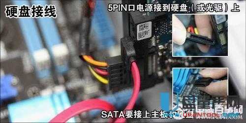 现在硬盘和光驱基本都是SATA接口了,接上SATA电源线(5PIN扁口线)和数据线即可。