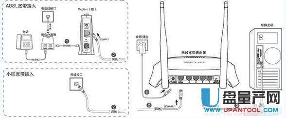 在没有路由器之前,我们是通过电脑直接连接宽带来上网的,那么现在要使用路由器共享宽带上网,当然首先要用路由器来直接连接宽带了。因此我们要做的第一步工作就是连接线路,把前端宽带线连到路由器(WAN口)上,然后把电脑也连接到路由器上(LAN口)