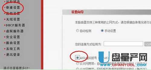 在“快速设置”菜单中选择“ADSL虚拟拨号”并“下一步”