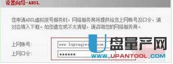 2.登陆后,您首先要设置ADSL虚拟拨号(PPPoE),输入你的ADSL用户名密码,这样路由器就能自动拨号上网。