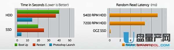 根据相关测试:两台电脑在同样配置的电脑下,搭载固态硬盘的笔记本从开机到出现桌面一共只用了18秒,而搭载传统硬盘的笔记本总共用了31秒,两者几乎有将近一半的差距。固态硬盘在传输速度上有很大的优势,最高可达500M/秒,其中读取速度达到400-600M每秒,写入速度同样可以高达200M每秒。对于1G的文件只需几秒就可搞定,而传统的IDE硬盘读取速度极限是无法超越200M每秒,写入速度也很难突破100M每秒,平时基本在几拾M每秒,这样对于常常需要读取大文件或处理大文件的用户来讲,使用固态硬盘是不错的选择。 相对固定的读取时间。由于寻址时间与数据存储位置无关,因此磁盘碎片不会影响读取时间。
