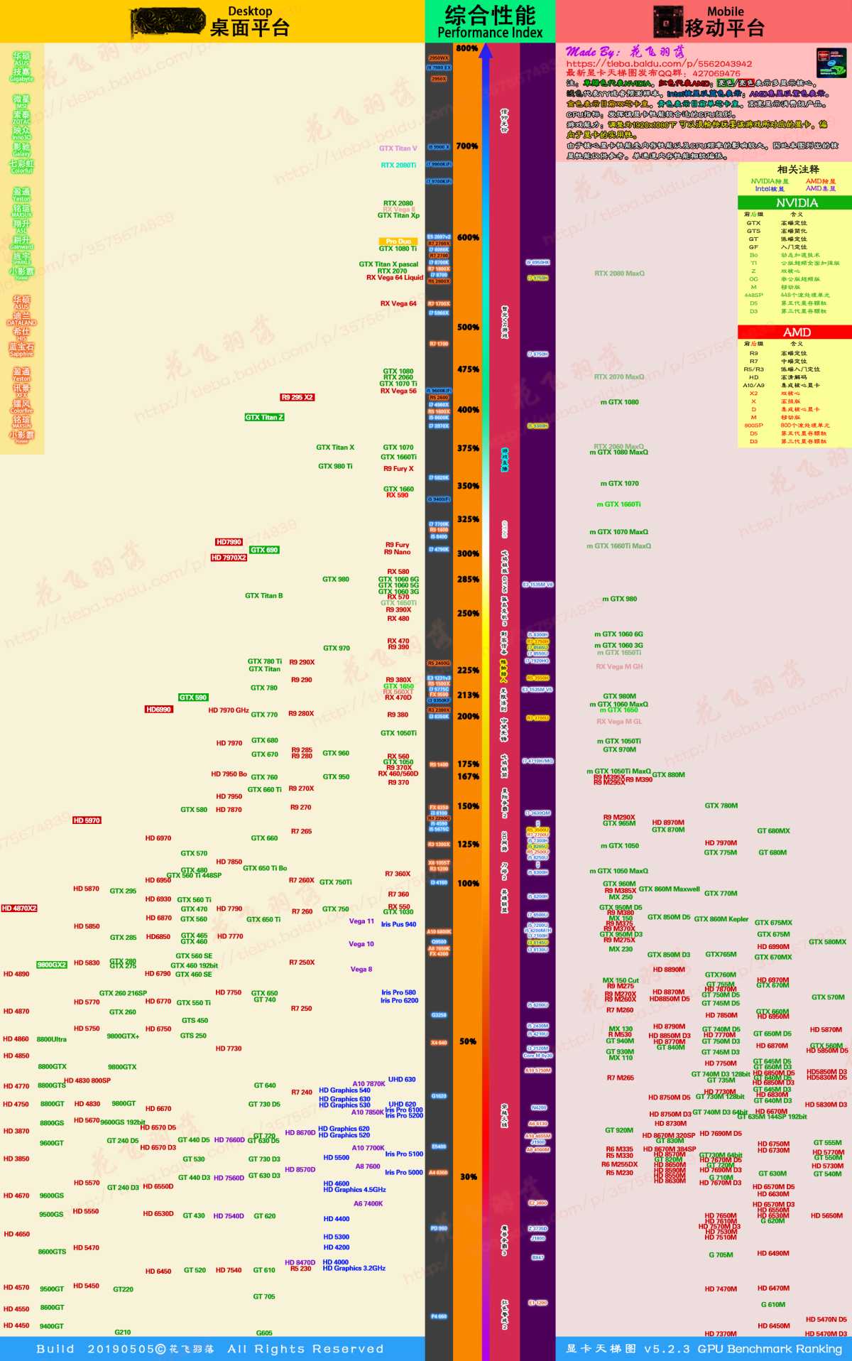 显卡天梯图2019.7版-台式笔记本区别显示