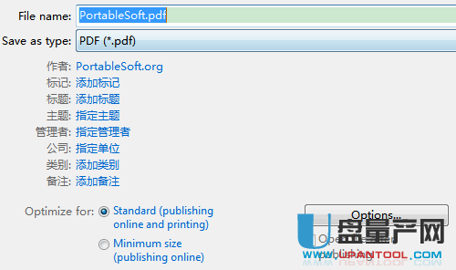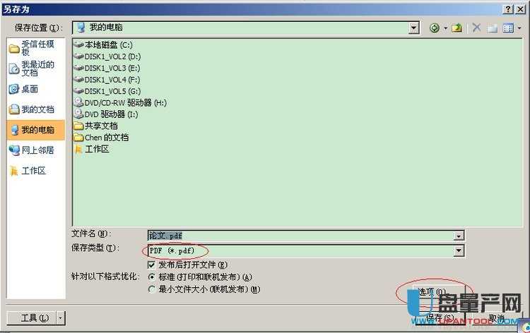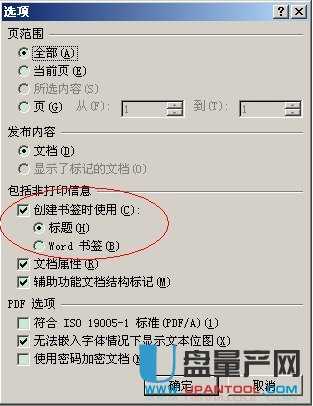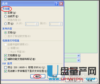 单击对话框中的“选项”按钮,从弹出的“选项”对话框中按我们的需要进行相关设置,比如只将某几页内容转换成PDF文件
