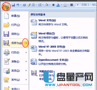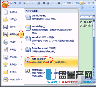 在Microsoft Word2007中单击最左上角的“Office”按钮,从弹出菜单中选择“另存为”命令边上的小三角形,再选择弹出菜单中的“PDF或XPS”