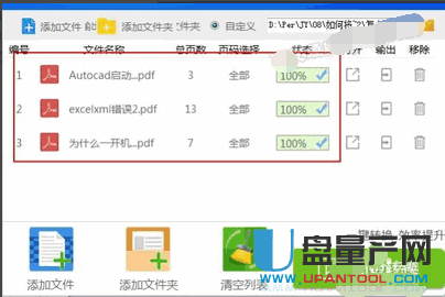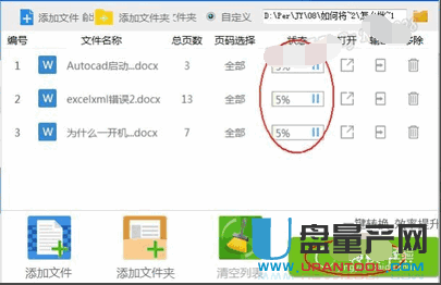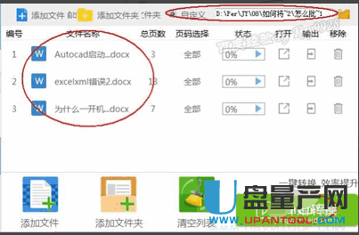 Word文档批量添加后,从上面的“自定义”处设置转换后的PDF保存位置,最后点击右下角的“开始转换”按钮继续: