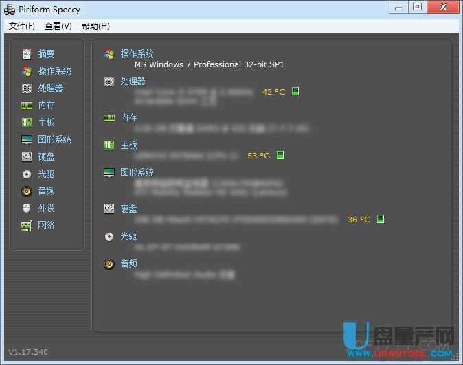 但它可以一次性的给出电脑各部分硬件的信息,比如主板,CPU,内存,硬盘,显卡,声卡,网卡,笔记本电池等,此类直接给出大概硬件信息的软件还有Piriform Speccy。
