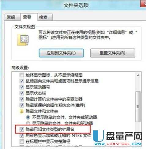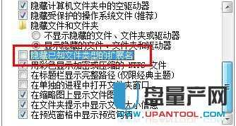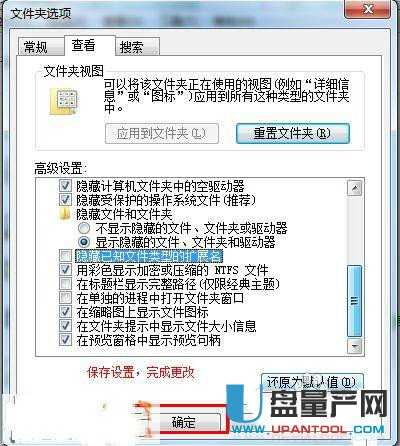 默认勾选的“隐藏已知文件类型的扩展名”去掉勾选,然后点击“确定”
