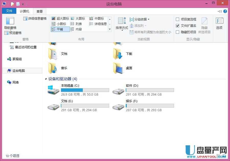 在文件夹界面中点击“展开图标”按钮,或者按“Ctrl+F1”热键,展开功能区。