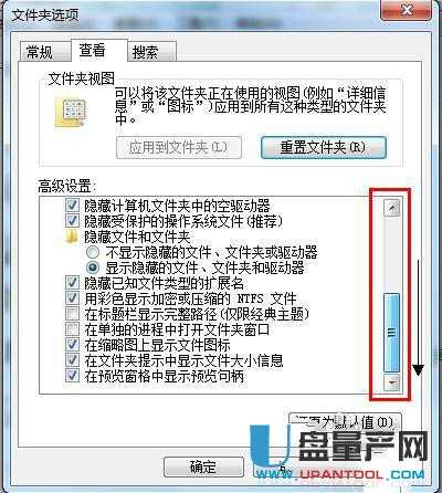 查看菜单栏下面找到高级设置,其次直接对它进行拖动,在选项中大家找到“隐藏一直文件的扩展名”选项,找到过后我们直接将其勾选取消。