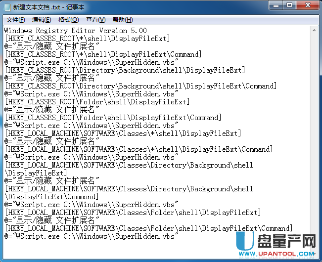 桌面右键新建一个文本文档,将下列代码粘贴进去,保存。