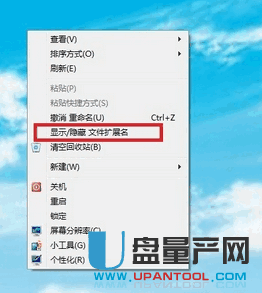 退到桌面,刷新一下,就可以在右键菜单里发现多了一个显示/隐藏 文件扩展名选项。