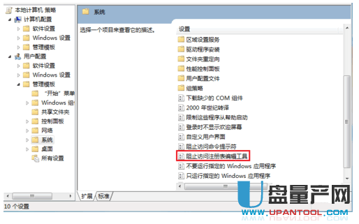 3、然后我们会在右边窗口找到一个叫 阻止访问注册表编辑器的选项,双击它