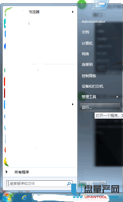 1、点击左下角的开始按钮,然后点击运行,如下图