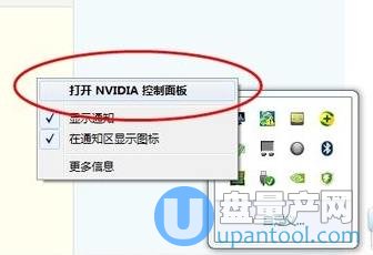 2、点击右下角托盘里的显卡图标,如果没有的话可以在桌面上点击鼠标右键,在菜单里点击显卡图标,然后就进入显卡设置界面了,不管是A卡是N卡都是一样的进入方法,下面以N卡为例教大家怎么设置性能。