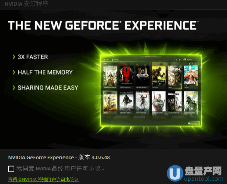 1、首先当然是下载GeForce Experience后安装好了,如下图安装界面
