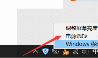 1、点右下角托盘区的电源图标,点鼠标右键,然后在菜单里点电源选项,如下图