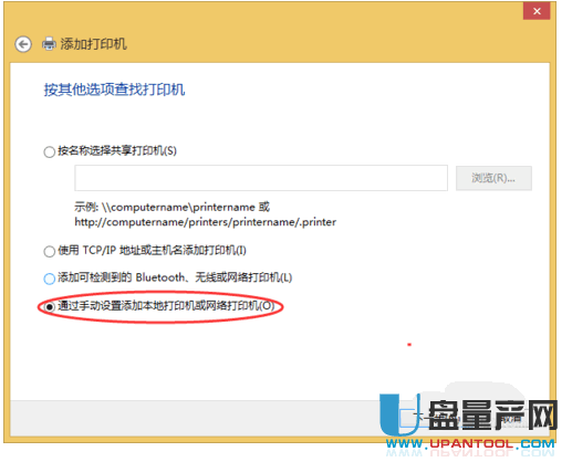 8、然后点击通过手动设置添加本地打印机或网络打印机,点下一步