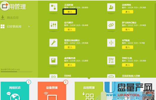 在新版tplink路由器的管理页面,点击“应用管理”选项打开