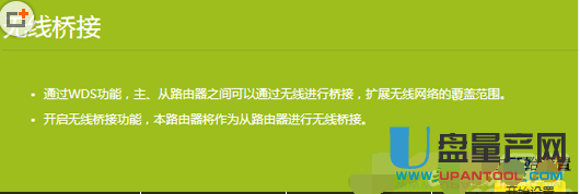 开启无线桥接功能,本路由器将作为从路由器进行无线桥接。