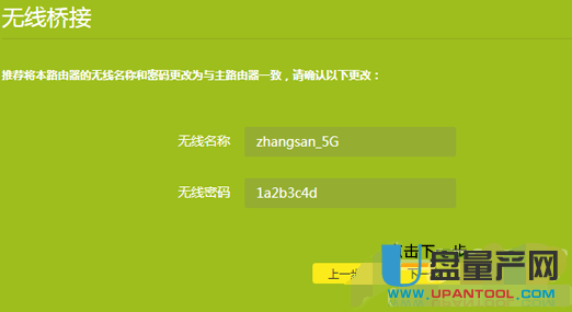 连接后,会自动将(桥接的)SSID及(桥接的)BSSID信息填入,最后输入自己想访问TP-Link的密码