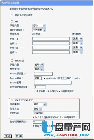 在“无线设置”——“无线安全设置”中设置无线信号加密信息