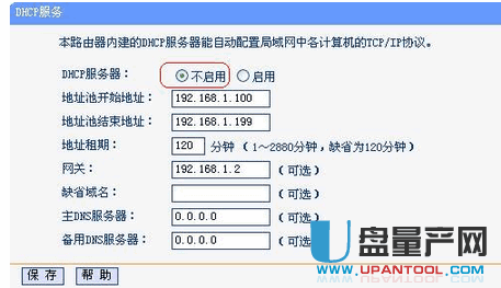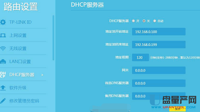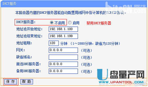 关闭DHCP服务器。在DHCP服务器中,选择“不启用”,“保存”,重启路由器。