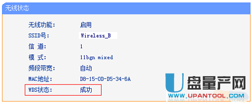 无线路由器A配置完成。此时无线路由器A与无线路由器B已成功建立WDS。