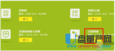 进入管理界面后,点击 应用管理,找到 无线桥接,点击 进入