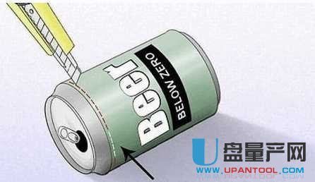 1、找到一个啤酒或者王老吉的易拉罐,喝了留下空瓶,准备好剪刀和美工刀,先用刀把易拉罐的底部去掉,然后刀配合剪刀按下图这样对易拉罐的饮水口出划出一半来,但注意在饮水口保留2cm左右不剪。