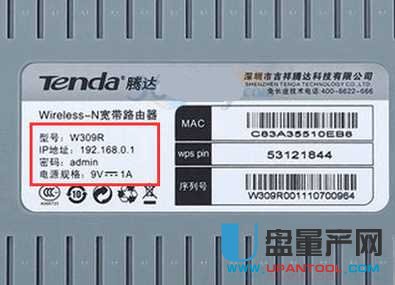 3、如果你输入192.168.1.1进不去,那么你可以翻开实物路由器的底部标签,上面有写登录ip地址是多少,比如下图还写了默认登录密码是多少。