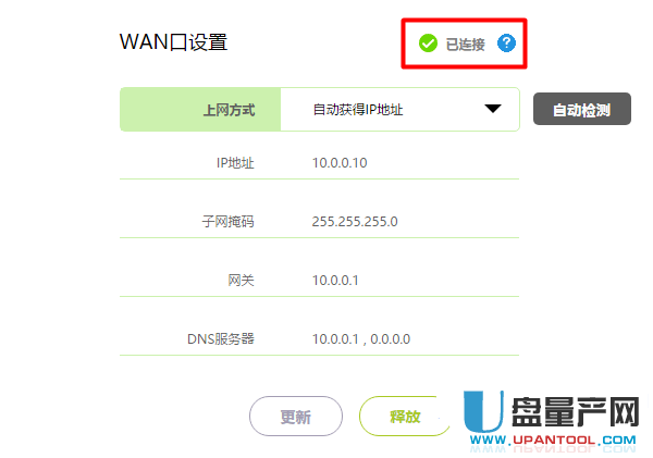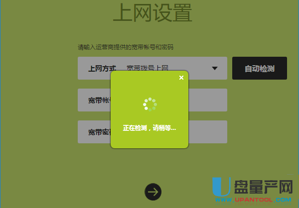 这里就是移动宽带上网的关键了,现在一般路由器都带自动检测上网方式的功能,我们点击它,然后就会检测我们的光猫是什么方式上网的了。