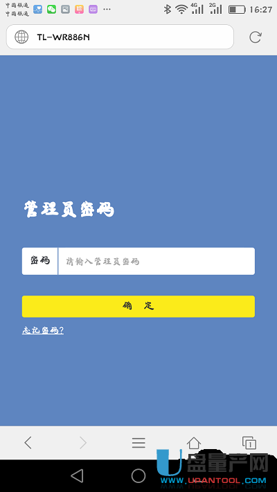 1、打开任意浏览器地址栏(非搜索栏)里输入管理地址,比如tplogin.cn,然后就会要求输入登录密码,这个不是wifi密码,如果是新路由器那么这个密码一般会在路由器背面写明是多少,而这款tp-link路由器新的是没有设密码,可以直接进,如果你设置过那么这里填入你设置的登录密码即可,有些老的路由器登录账户和密码默认都是admin,如果你不知道的情况下可以试试,如果你忘记了登录密码,可以直接按住路由器的reset重置键10秒可以恢复出厂设置,这样就恢复默认登录密码了,就可以进入路由器了。