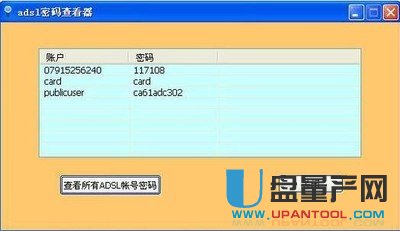 可以看到软件打开后就能查看所有的宽带账户和密码了,只要你电脑连接成功过,都会这里检测出来,然后就能直接使用了,还是很简单的。
