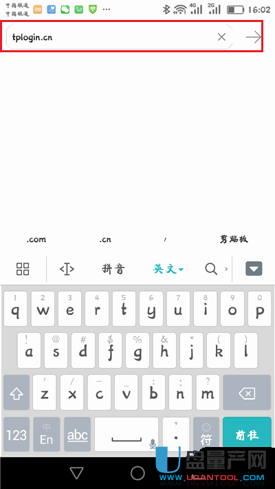 4、按上面铭牌的地址输入手机浏览器地址栏,注意别输入到搜索栏了,是最顶部的地址栏,这里的是tplogin.cn