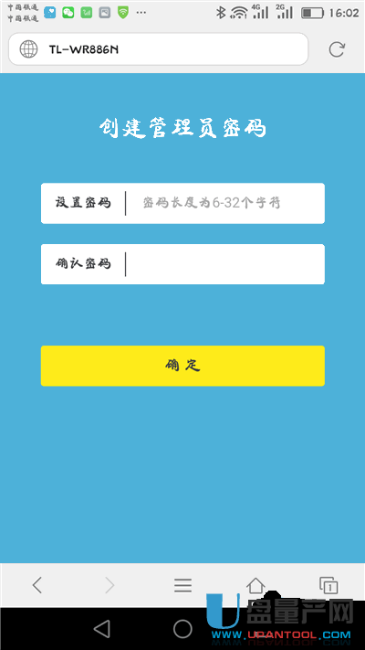 5、然后就会自动进入设置界面了,tplink的路由器第一次登陆会要求填入一个管理员的密码,其他路由器可能不会,所以我们填入一个好记的密码,注意这个密码一定要记住,否则以后登陆路由器地址没密码就进不去了。