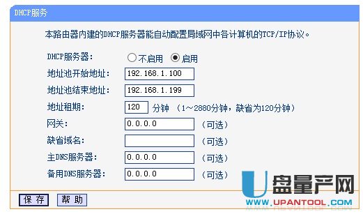比如我们设置了路由器的DHCP服务器,让DHCP服务器自动分配IP地址,从192.168.1.100到192.168.1.199(子网掩码会自动设置,我们无需设置),如下图。