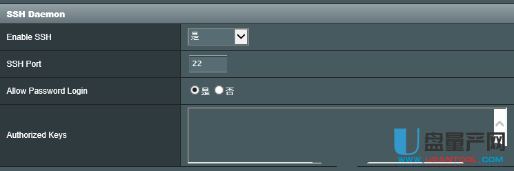 1、 首先,我们直接登录路由器设置界面,在系统设置里面找到SSH的开关,虽然是英文的但无难度,如下图