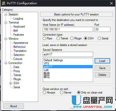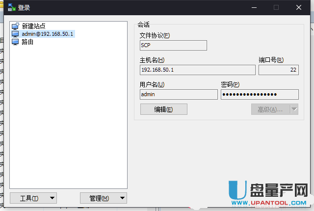 3、下载putty或者xshell工具去连接路由器本身,连接方式如下图,端口一般都是22,主机名就是路由器管理登录ip,用户名和密码是默认出厂的admin。