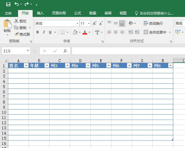 4、然后就自动套用样式建好表格了,如下图这样的,颜色和表格边框都已经有了,我们只需要填入列名,行名就行了。