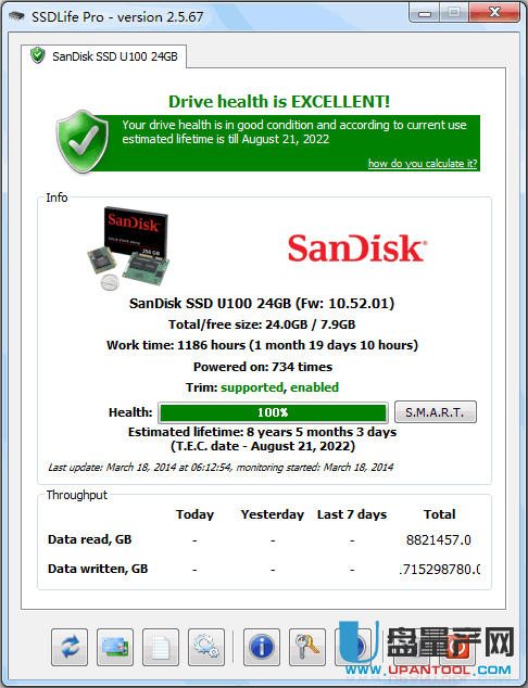 SSDLife本版本为特别版,绿色免安装可以放u盘携带,直接使用即可,没有功能和时间上的限制,用来看固态硬盘健康程度最好了。