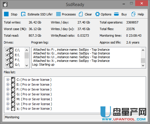 SsdReady 是一款能够检测 SSD 固态硬盘寿命的工具,与其他检测工具不同的是 SsdReady 通过统计一天的硬盘使用量来推算寿命,相对来说比较准;