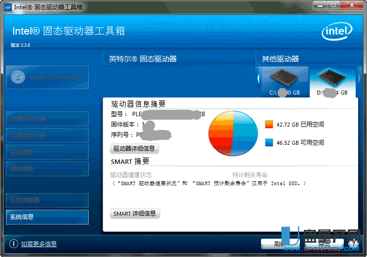 PS:由于小编使用的不是 Intel 固态硬盘,所以暂时无法给大家测试。如果你使用的是 Intel 固态硬盘,可来检测下你的固态硬盘信息。