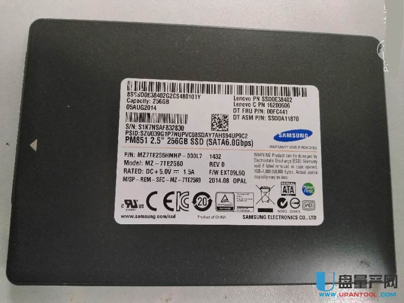 它适用于Samsung PM851 2.5寸 128GB/256GB/512GB(版本EXT08D0Q)的固件升级使用,注意这是oem的固态硬盘别搞错了,看上图的这种才行。