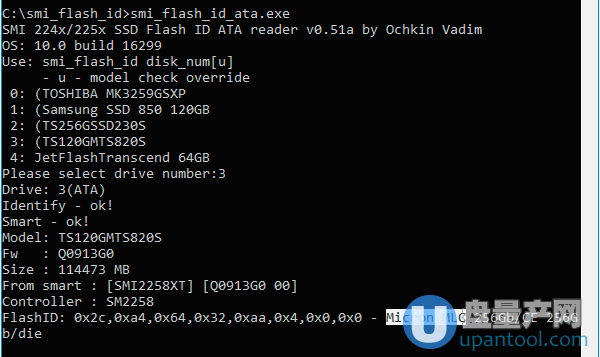 如果你的固态硬盘是sata接口上的那么执行smi_flash_id_ata.exe,如果在usb接口上的那么执行smi_flash_id_usb.exe