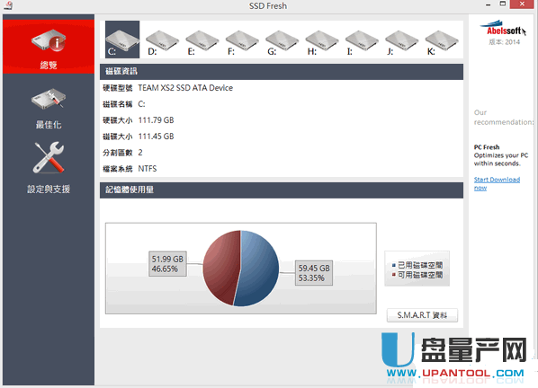 绿色中文便携版,解压后双击SSDFresh.exe即可执行,第一次使用要用你的邮箱免费注册一下,注册后打开你的邮箱激活就可以使用了。