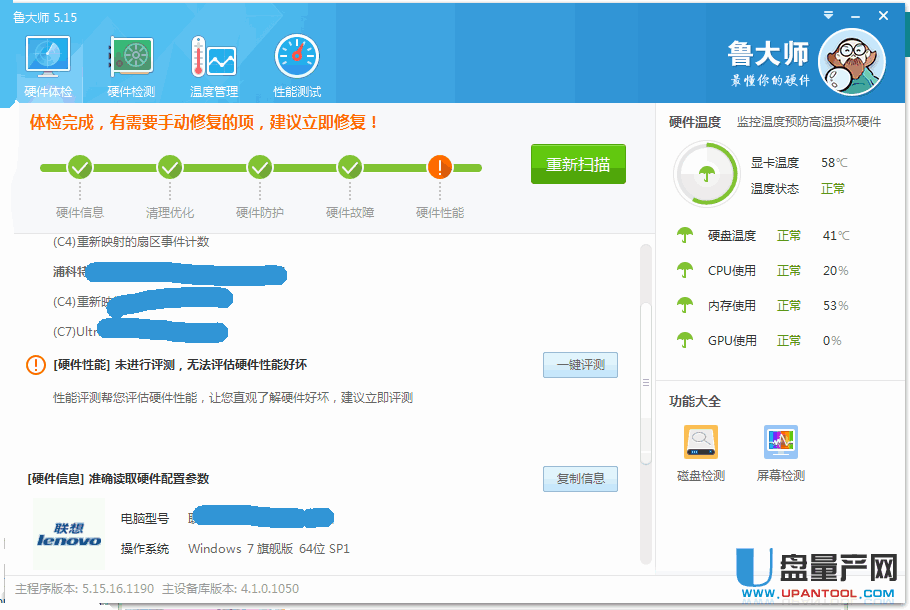 3、若发现鲁大师的卸载项丢失时,能够自动修复卸载项