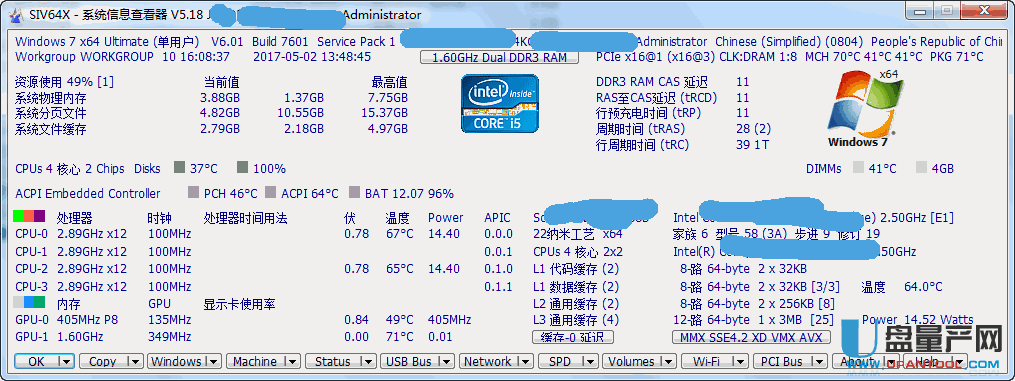 新版本已经汉化了,SIV是技嘉出的用来测试主板电压,CPU温度,风扇速度,硬盘使用率,和内存使用率的软件,看着就非常专业。