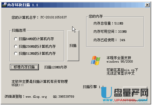 本软件是在windows下扫描内存有没有坏的物理区域,全面支持中文,使用与MemScan相同的扫描引擎,就是在一些版的windows xp下无法显示正确的中文。