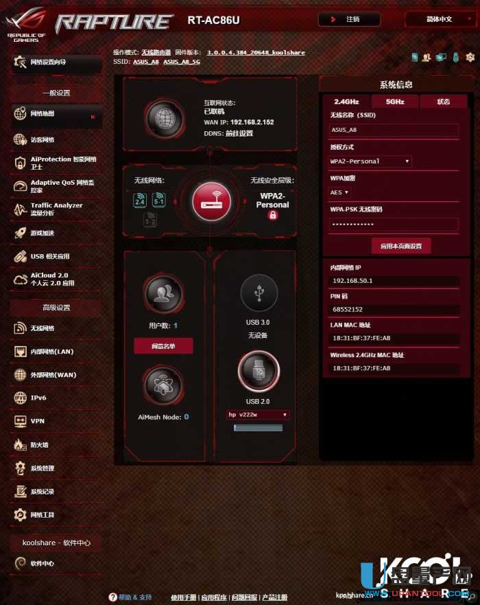 华硕RT-AC86U官方改版固件,支持更多功能AiMesh+软件中心+ROG,如果不满足官方自己的固件,可刷入此固件。