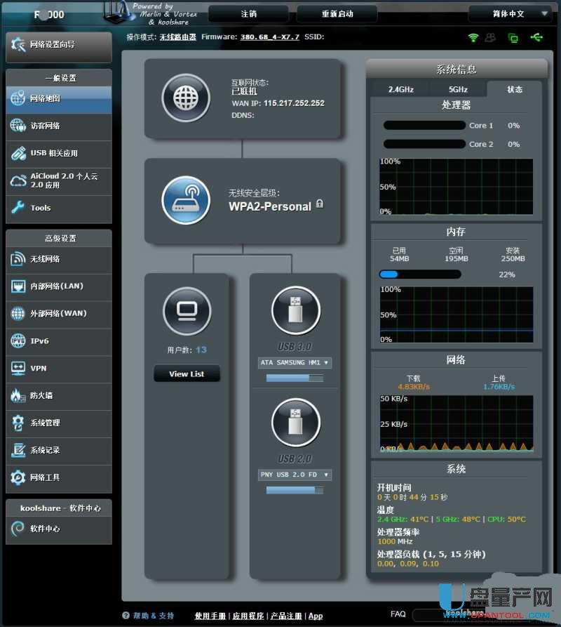 重启完成后,确保路由器连上网络,然后进入软件中心,首先更新软件中心到最新版本,然后即可安装并使用插件。